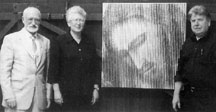 Bei einem Besuch des Künstlers in Liebenburg wurde der Entwurf des Christuskopfes diskutiert (v.l.n.r.) Stiftungsratsmitglied Dietrich Willeke, Oberin Angela Tiemann sowie Gerd Winner.