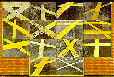 Wegkreuze-Kreuzwege Gerd Winner Wandbild im Saal des Dominikanerklosters 14teilig, Siebdruck auf Leinwand, 4,00 m x 6,00 m